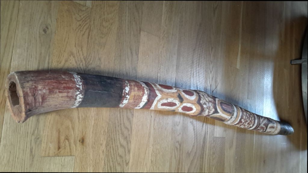Il mesure un mètre 22 cm l'embouchure extérieur 3 intérieur 2 cm et demi la petite cloche tout juste 4 cm et demi sa note FA